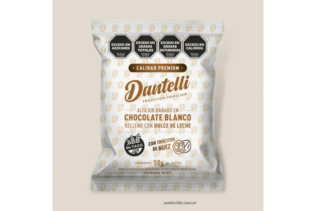 DANTELLI Alfajor x50g CHOCOLATE BLANCO CON NUEZ STACC