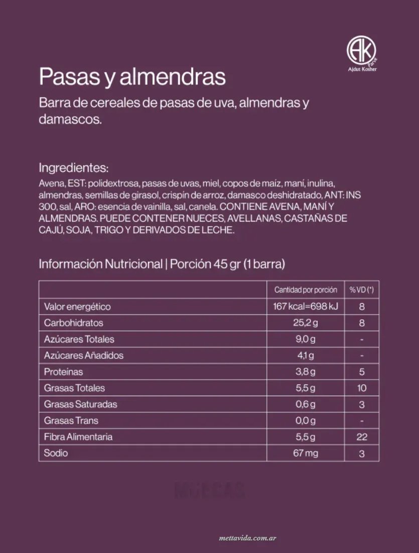 MUECAS Barra de cereal x45g PASAS Y ALMENDRAS